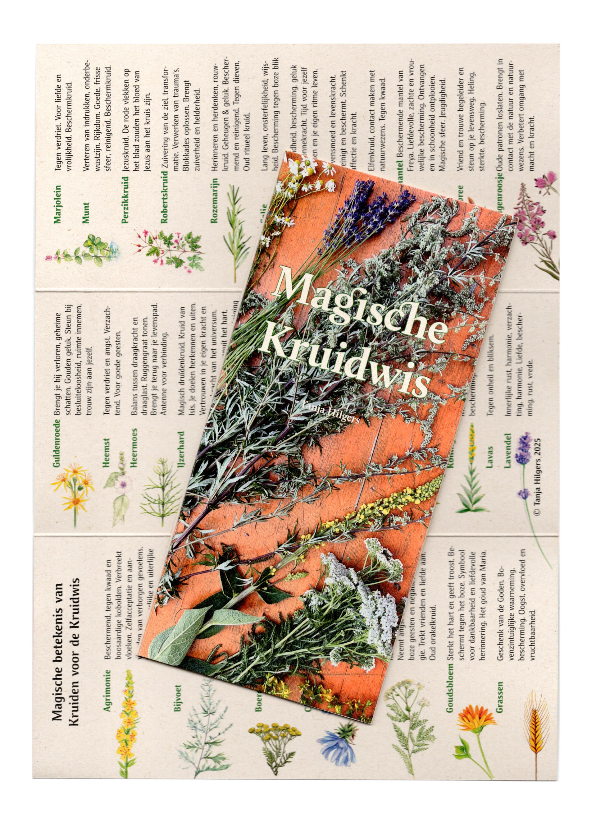 Aan de ene kant staat uitleg en informatie, aan de andere kant een overzicht van de betekenis van magische planten.