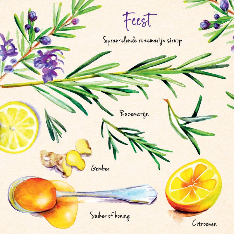 6 vierkante postkaarten met kruiden recepten