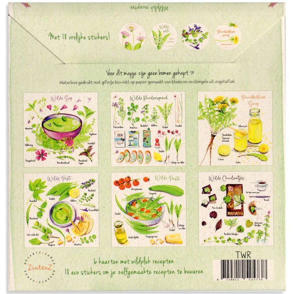 6 vierkante postkaarten met wildpluk recepten